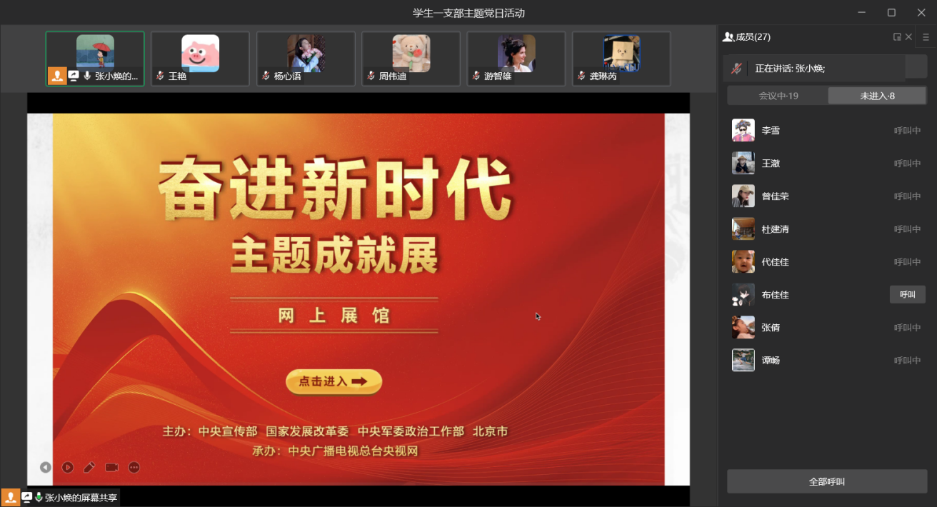 张老师首先带领支部党员线上参观了“奋进新时代”主题成就展网上展馆,直观感受党和国家事业发展的新局面,更好地学习贯彻落实党的二十大精神。并鼓励同志们答题闯关。