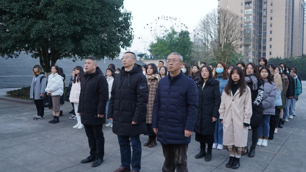 12月13日,在第八个南京大屠杀死难者国家公祭日到来之际,新葡的京集团35222vip在校前广场举行了升旗仪式。文新学院党委书记、副院长李华平,党委副书记、院长王仕勇,党委副书记、纪委书记程元元,全体辅导员和2020级部分学生共160余人参加了此次仪式。