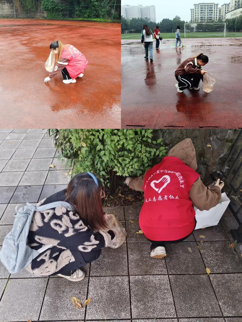 到达各自的清洁地点之后,成员们戴上手套,拿着垃圾袋,重点对绿化带、道路、教室、楼道等区域进行清洁。成员们配合默契、积极认真,在同学们的共同努力下,周边环境变得更加整洁。同时成员们呼吁广大同学共同努力,营造一个干净整洁的校园,形成讲文明、树新风、促和谐的良好校园风气,共创文明校园。