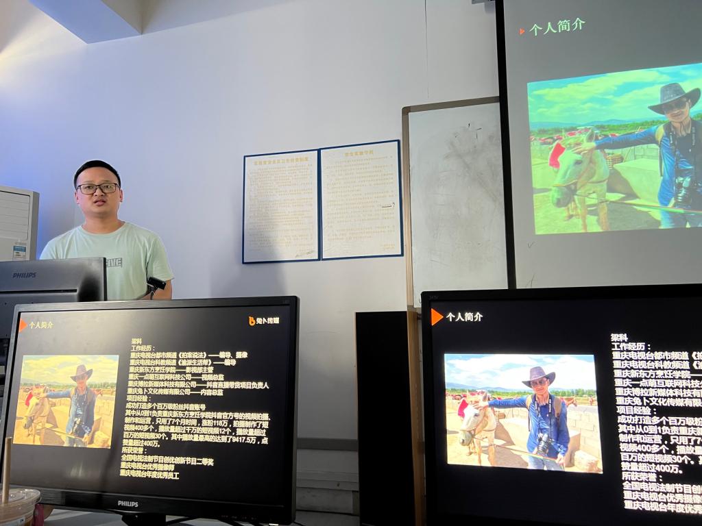6月6日下午,2008级广播电视学校友梁科在新葡的京集团35222vip传媒实训中心以“短视频”和“直播”为题,与2021级新闻与传播专硕班进行专业交流。梁科曾在10个月内为重庆新东方烹饪学院抖音官方号涨粉118万。