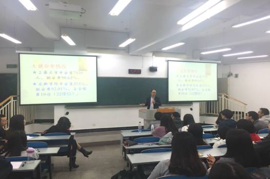 招生就业处周婷老师就2017届毕业生就业形势分析、新葡的京集团35222vip学生就业的主要特点和存在问题、单位的用人标准、就业流程、就业政策等内容为同学们进行了详细的讲解,建议同学们积极参加学校、学院举办的招聘会,积累就业经验,最终实现顺利就业。