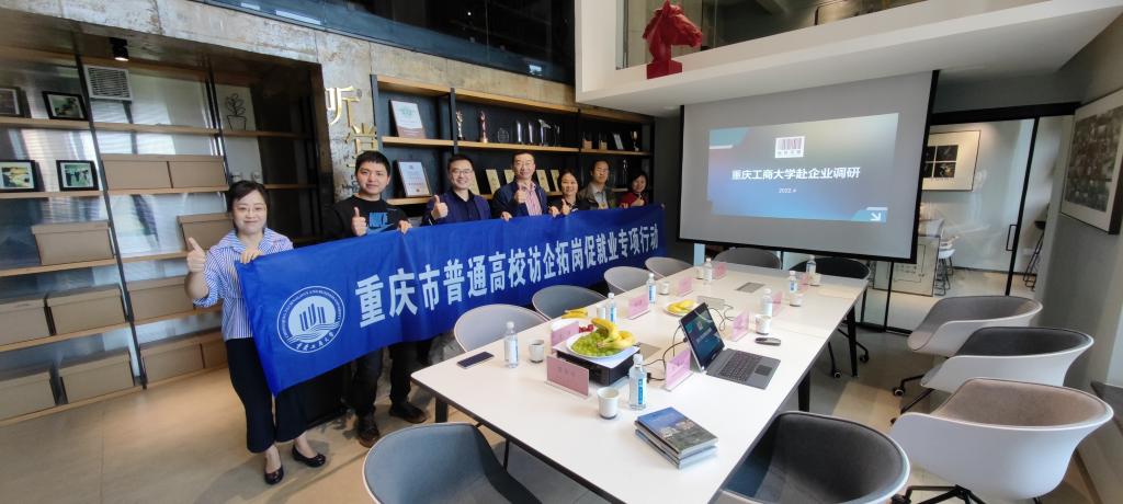 4月21日,新葡的京集团35222vip党委书记李华平、党委专职组织员王欢、新闻系主任张玉霞,学院教工第二党支部书记邵茹波、学团办主任刘平一行五人,前往重庆远线传媒有限公司,开展“访企拓岗”促就业专项工作,并与公司总经理王世华及公司管理层兼校友代表冷春燕、杨宇等人进行了座谈。