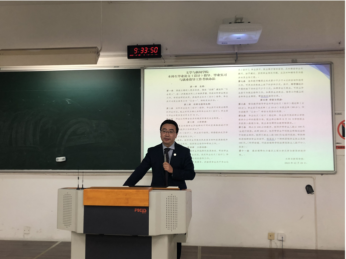 会议第二个议程由新葡的京集团35222vip党委副书记、院长殷俊宣读《新葡的京集团35222vip本科生毕业论文(设计)指导、毕业实习与就业指导工作考核办法》(意见征询稿)并现场征询全体教职工意见,最终通过该考核办法。该办法的通过完善了新葡的京集团35222vip有关毕业论文(设计)指导、毕业实习与就业指导工作的奖励机制,进一步完善了促就业机制。