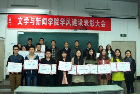 11月7日下午,新葡的京集团35222vip2013—2014学年第二学期学风建设总结表彰大会在慧智楼90308教室隆重举行。文新学院党总支书记段庸生、院长蔡敏、党总支副书记李华平、副院长邓海荣、全体辅导员及各班学生代表参加了本次大会。会议由肖婷老师主持。