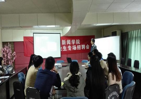 11月13日,闻康国际(重庆)科技有限公司人力资源部池晓莹女士一行在新葡的京集团35222vip90526会议室举行专场招聘会。文新学院就业联络员肖婷老师、11级20余名毕业生参加了本场招聘会。