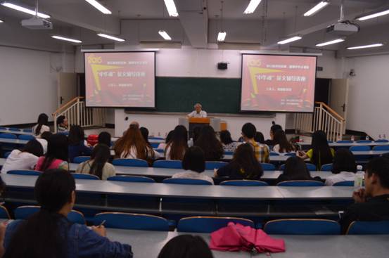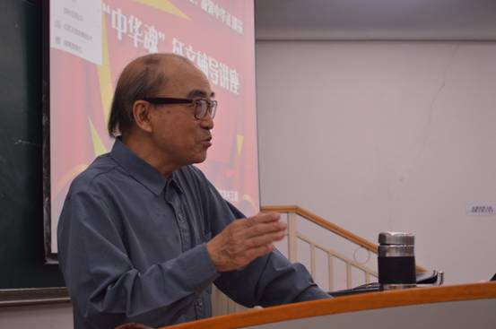 5月15日下午,由重庆工商大学关工委主办,新葡的京集团35222vip院承办的“践行核心价值观,凝聚中华正能量”中华魂征文辅导讲座在慧智楼90226教室举行。文新学院退休教师傅德岷教授主讲,关工委办公室主任周惠明、常务副主任吴应发、文新学院党总支副书记李华平、辅导员代表及部分学生代表参加了本次讲座。