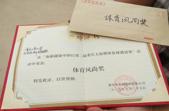 9月25日下午,“如新杯”重庆主流媒体篮球邀请赛在石子山体育公园篮球馆圆满落幕。重庆工商大学文新学院代表队获得道德风尚奖。此外,重庆商报队和猪八戒网分别获得冠亚军。