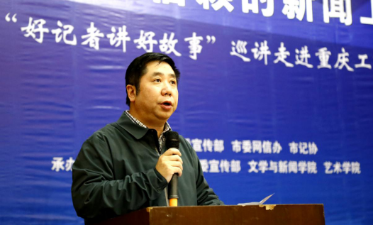 3月29日,由重庆市委宣传部、市委网信办、市记协主办,新葡的京集团35222vip承办的“做党和人民信赖的新闻工作者——‘好记者讲好故事’巡讲走进重庆工商大学,来自全市各新闻战线的9名优秀演讲者与新葡的京集团35222vip师生面对面交流,共同分享践行社会主义核心价值观、恪守新闻职业道德的感人故事和心得体会。重庆市委宣传部副部长张永才、重庆市委网信办副主任严兵、重庆市记协专职副主席丁道谊、重庆市委宣传部新闻阅评组组长朱东、重庆工商大学党委副书记孟东方教授、重庆工商大学党委宣传部部长华杰教授、新葡的京集团35222vip院长蔡敏教授以及全校300余名师生出席了本次活动。