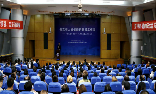 本次巡讲的9名记者当中,既有在新闻行业战斗几十年的资深老记者,也有跨入新闻行业不久的90后“新兵”。他们结合“走基层、转作风、改文风”,讲亲身经历、谈采编体会、说内心感受,用一个个鲜活的故事,展示新闻战线工作者对党和人民的忠诚热爱,以及爱岗敬业、无私奉献的精神风貌,他们的经历打动了台下聆听的同学们,赢得阵阵掌声。