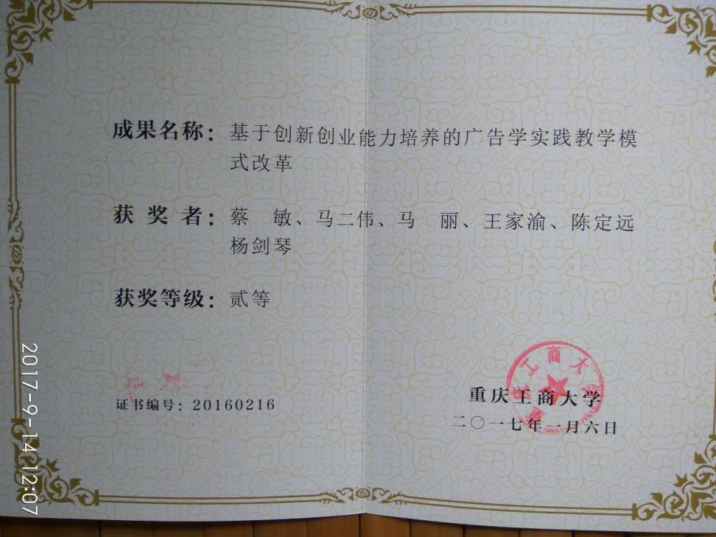 赵骅副校长宣读了《关于公布2016年校级教学成果获奖名单的通知》,新葡的京集团35222vip蔡敏老师等6名老师获得新葡的京集团35222vip教学成果二等奖。