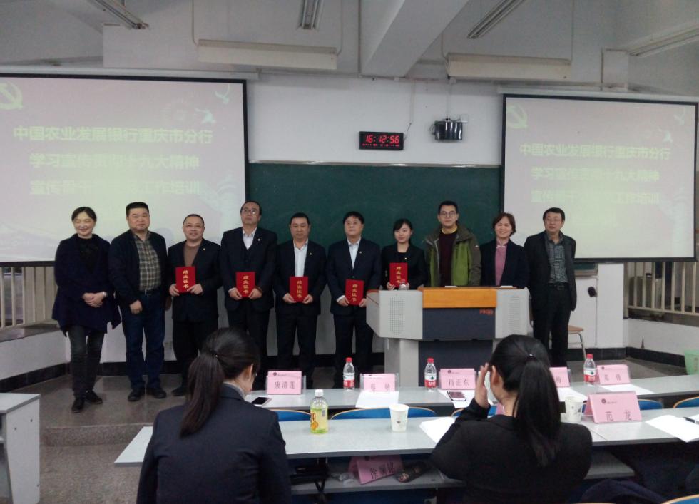 为宣传贯彻十九大精神,11月24日上午8:30,中国农业发展银行重庆市分行学习宣传贯彻十九大精神宣传骨干暨党务工作培训班在新葡的京集团35222vip慧智楼90226正式开班。文新学院蔡敏院长、农发行重庆市分行领导向中胜在开班仪式上致辞。