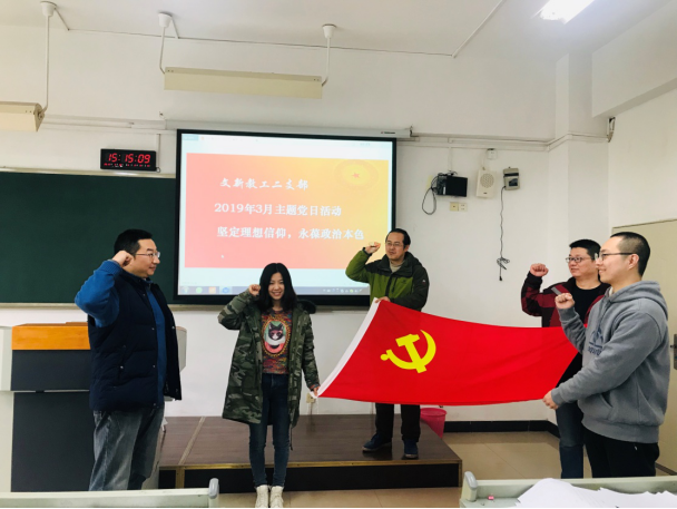 与会党员还热烈交流和讨论了“学习强国”APP学习经验、收获、心得,认为该平台学习内容丰富多彩,学习方式灵活多样,积分奖励更是提高了学习热情,使大家获益匪浅。活动最后,支部为2月、3月入党的四位党员邵茹波、董凯、姚琦、郭盈伶同志过“政治生日”。四位同志党龄都较长,大都在本科阶段就光荣地加入了中国共产党,遥想自己入党时的情景,四位同志满怀深情,甚为激动,不仅分享了入党的故事,也表示过“政治生日”很有意义,提醒自己时刻牢记坚定理想信念、永葆政治本色。在学院党委李华平副书记带领下,四位同志重温了入党誓词,铿锵誓言不绝于耳。