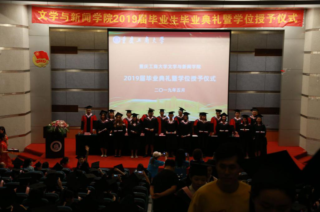 典礼在视频《文新之约—致新葡的京集团35222vip2019届毕业生》中拉开帷幕。随后,李华平副书记宣读《新葡的京集团35222vip关于表彰2019届优秀大学毕业生的决定》,刘宏毅副院长宣读《新葡的京集团35222vip关于表彰2019年学生考研的决定》,主席台领导和嘉宾为5名重庆市优秀毕业生,38名校级优秀毕业生,27名考取研究生毕业生颁发荣誉证书。主席台院领导和嘉宾为466名本科毕业生扶正流苏,并与他们合影留念。