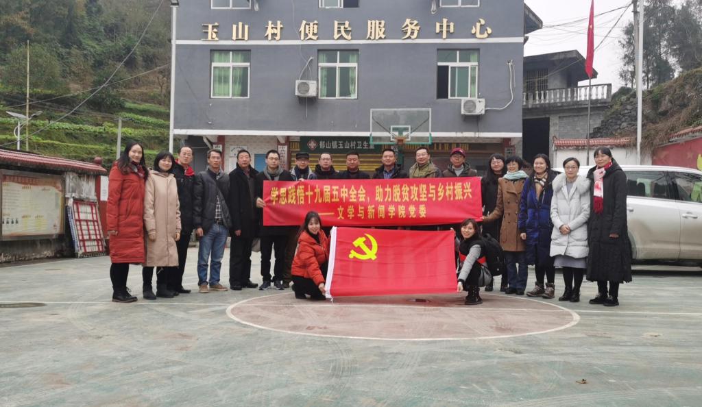 今年是脱贫攻坚的决战决胜之年,为深入学习习近平总书记关于扶贫工作的重要论述,领会落实十九届五中全会精神推进脱贫攻坚与乡村振兴有效衔接,12月4日,文学与新闻党委带领学院教工党员前往彭水县的贫困村玉山村开展“学思悟践十九届五中全会,助力脱贫攻坚与乡村振兴”主题党日活动。