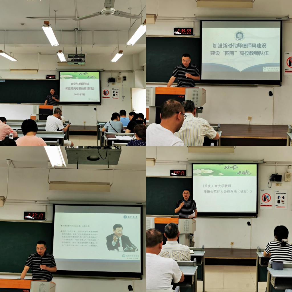 为扎实推进师德师风建设工作,全面提升新葡的京集团35222vip教师思想政治素质和职业道德素养,7月9日下午,新葡的京集团35222vip在慧智楼90625教室召开师德师风专题教育培训会。大会由学院党委书记李华平主持,全体教职工参加培训会。