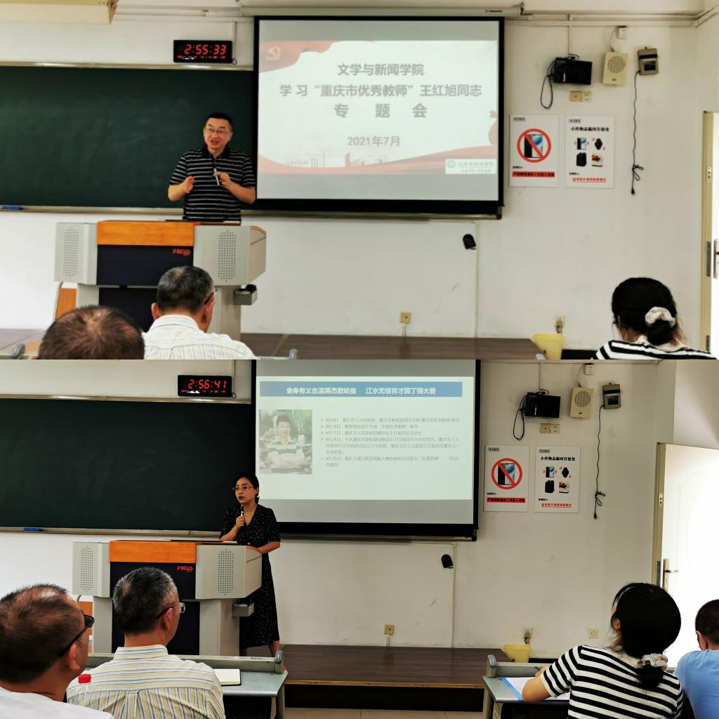 7月9日,新葡的京集团35222vip在慧智楼90625教室召开学习“重庆市优秀教师”王红旭同志英雄事迹专题学习会议。会议由党委书记李华平主持,全院教职工参加会议。