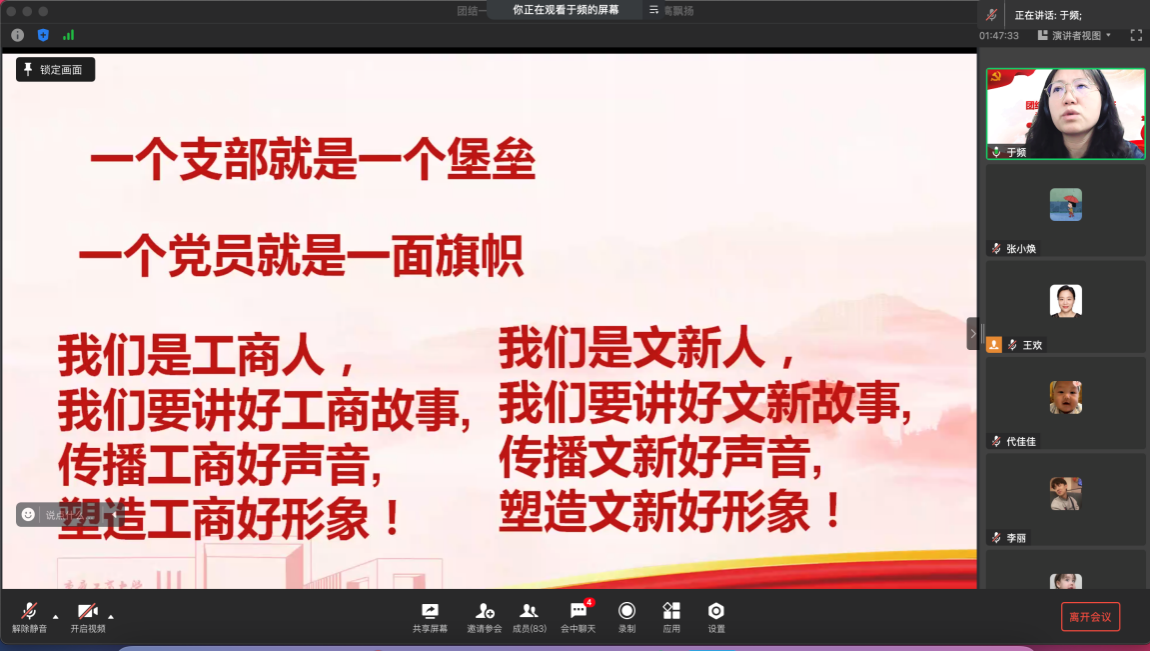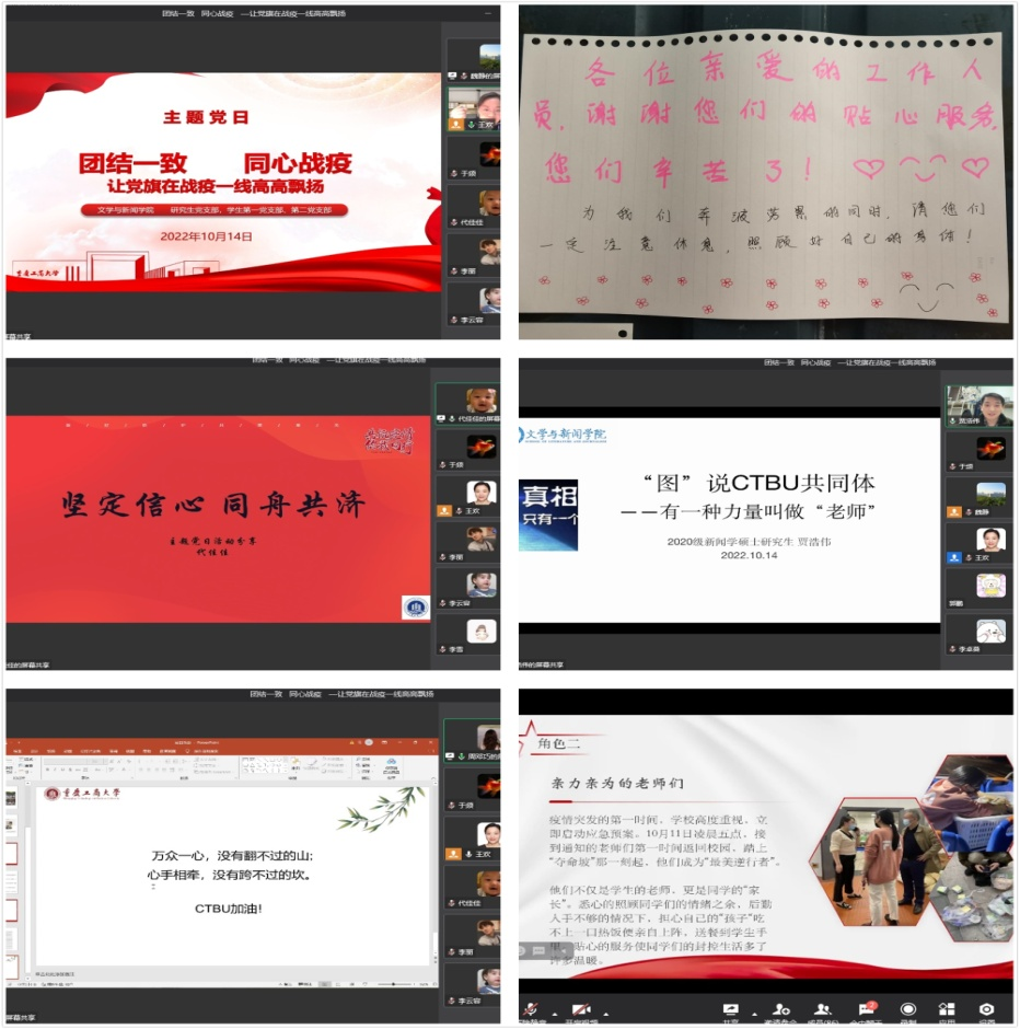 10月14日晚,学院党委组织研究生党支部、学生一支部、学生二支部在线上联合举办了主题党日活动“团结一致 同心战疫——让党旗在战疫一线高高飘扬”,学院全体党委委员,各支部书记、支委,全体学生党员参加了活动。