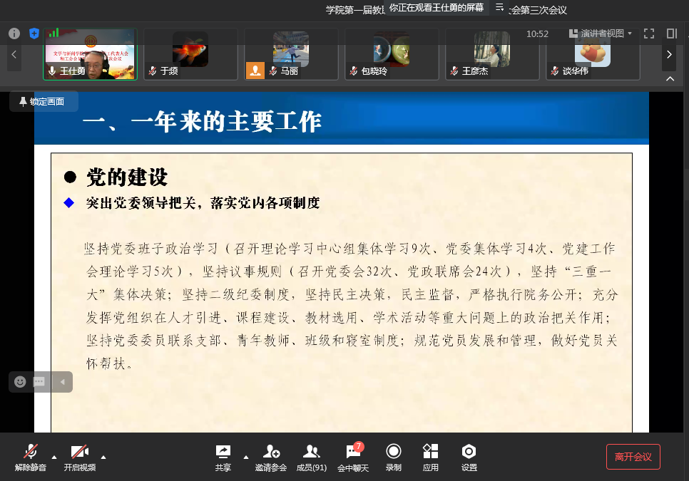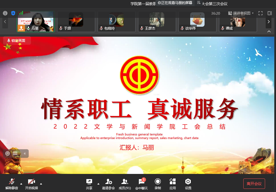 12月29日下午,新葡的京集团35222vip第一届教职工代表大会和工会会员代表大会第三次会议顺利召开。全体院领导、学院教职工参加会议,会议由工会主席马丽主持。