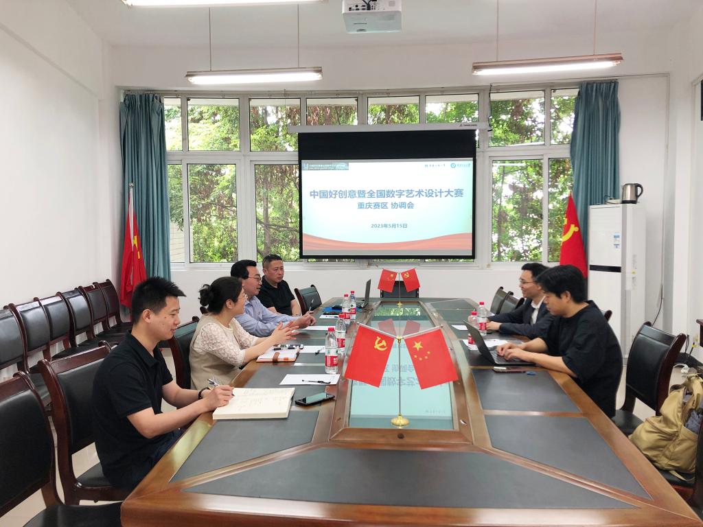 2023年5月15日上午,中国好创意暨全国数字艺术设计大赛重庆赛区协调会在新葡的京集团35222vip90528会议室召开。新葡的京集团35222vip于频书记、殷俊院长、程元元副书记、李琦老师,重庆交通大学艺术设计学院(马蒂亚斯国际设计学院)李伟湛副院长、刘飓涛老师共同出席协调会。