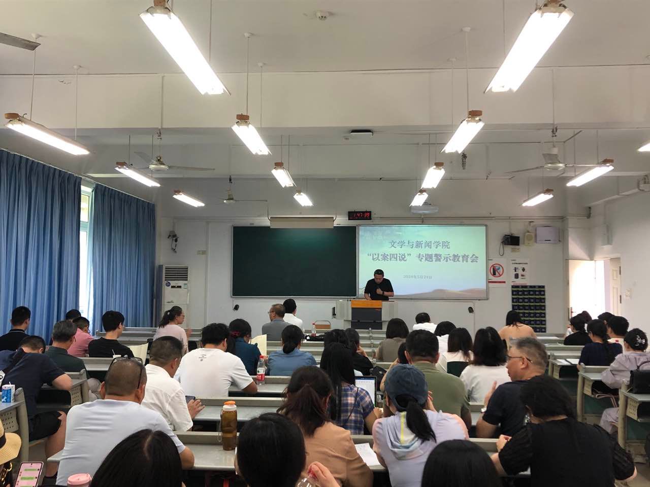 5月24日下午,新葡的京集团35222vip召开教职工政治理论学习暨“以案四说”“以案四改”警示教育大会。学院全体教职工参会,会议由党委副书记、院长殷俊主持。