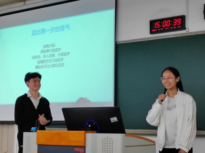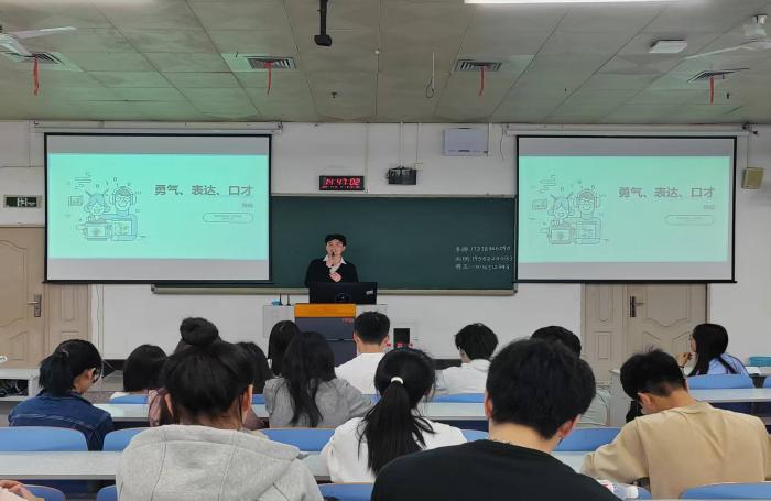 活动中,李娜分享了在不同场合的主持技巧,重点提到如何根据观众调整主持风格。明玉老师强调演讲中情感表达的重要性,并指出:“能够把话说进别人的心里,就叫演讲。”雨桐老师表示:“中国社会百分之九十的机会需要通过表达获得。”他通过“自我介绍”互动环节,鼓励同学们勇敢迈出第一步。