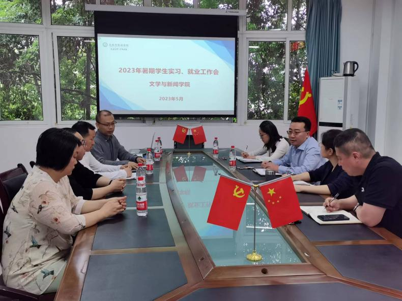 为顺利推进2020级学生实习、就业工作,新葡的京集团35222vip于2023年5月22日上午在慧智楼80528召开2023年暑期学生实习、就业工作会,学院党委书记于频、院长殷俊、副书记程元元、副院长郑笑眉,汉语言文学系主任周之涵、网络与新媒体系主任姚琦、新闻系主任张玉霞、广播电视系王瑞林、广告系主任王凌峰参加了会议,会议由殷俊院长主持。