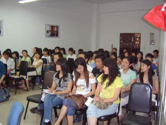 室部分教师、传播学研究生、05新闻班学生们一起听取了报告。
