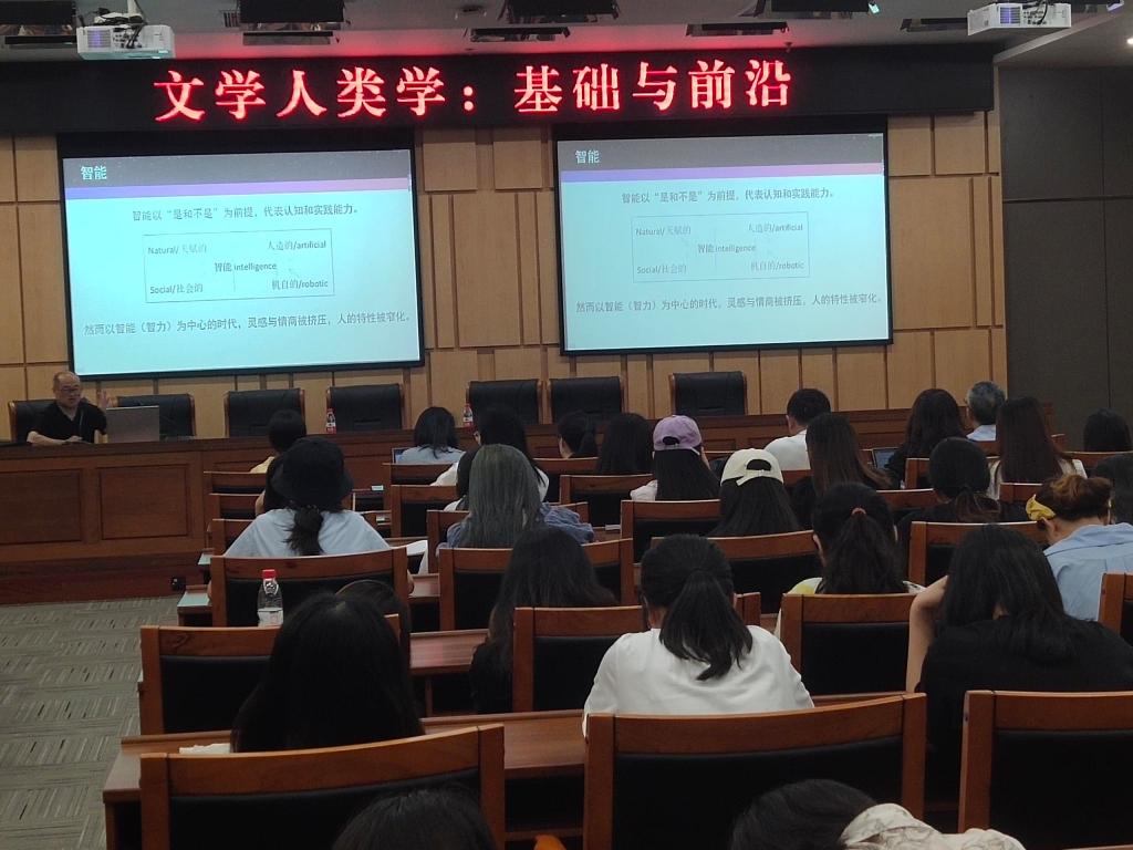 在问答交流环节中,在座师生就“在‘人类世’的新时期,人工智能是否将取代智人写作?诗性与算法、人智与数智孰胜孰负?”等问题展开了热烈的交流和探讨。