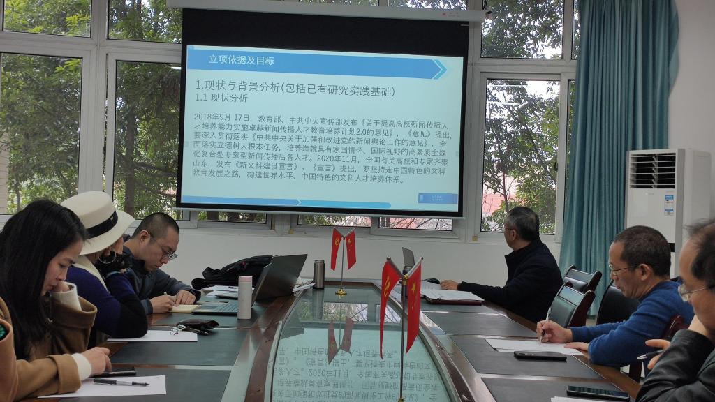 开题会由学院院长王仕勇教授主持。会上,王仕勇教授作为重大项目“面向新文科建设的卓越新闻传播人才培养研究与探索”副主持人和重点项目媒介融合学科融合背景下基于增强‘四力’的新闻传播教育教学体系改革与实践”主持人从课题界定、研究目标、研究内容、研究方法、经费开支、预期成果、目前已开展的研究及后续的研究工作等方面向专家们进行了汇报。