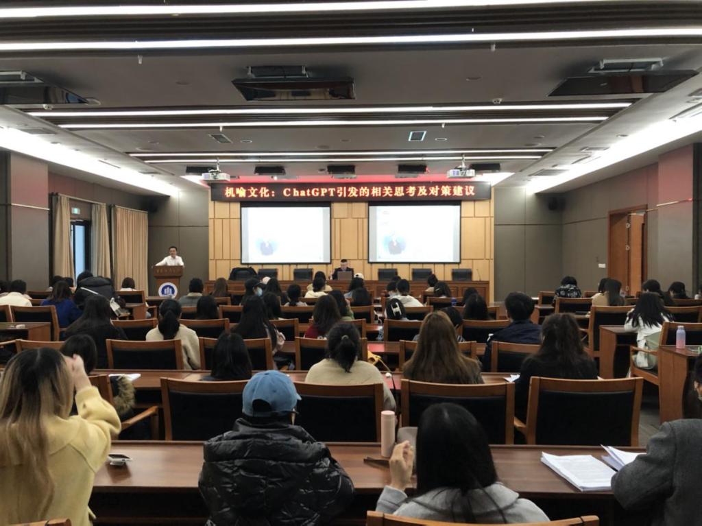 在互动交流环节,有学生提出ChatGPT等人工智能新产品的现实应对方法问题,张教授认为应保持自省态度,知己知彼,积极应变,结合国情与原有搜索引擎方为上策。
