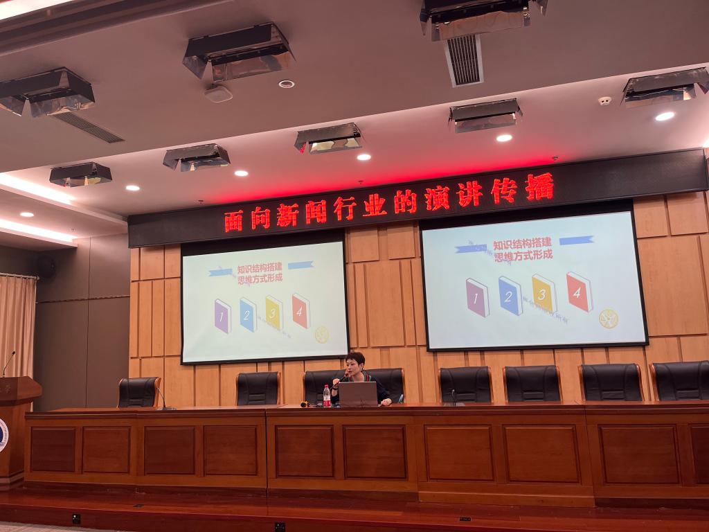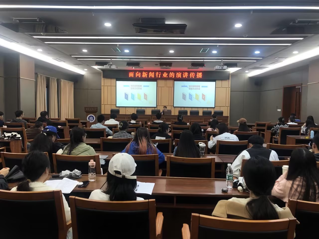 10月25日上午,重庆电视台主持人、主编、重庆广播电视集团(总台)播音专委会副秘书长向晶应邀来新葡的京集团35222vip作《面向新闻行业的演讲传播》专题讲座,讲座在图书馆会议中心一会议室举行,由副院长郑笑眉主持,新闻传播学研究生参加。