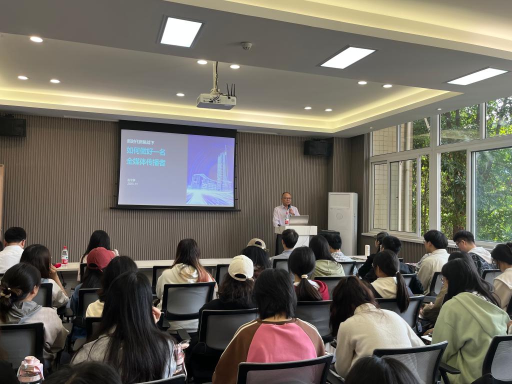 赵宇翀从新闻与传播行业的视角向大家阐述了“新时代”的定义,解释了当下新闻传播事业与新闻工作者正在面临的国际形势与现实挑战。党的二十大报告指出要“加强全媒体传播体系建设,塑造主流舆论新格局”,赵宇翀就此为大家提出了如何做好新时代新挑战下的全媒体传播工作的建议。