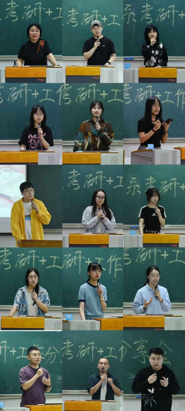 此次分享交流会为有意向考研或求职的同学提供了交流平台,让同学们对于考研规划以及求职渠道有了更明确的认识。同时收获了实用的择校建议、复习进程、答题技巧等,进一步增强了同学们的考研、就业信心。
