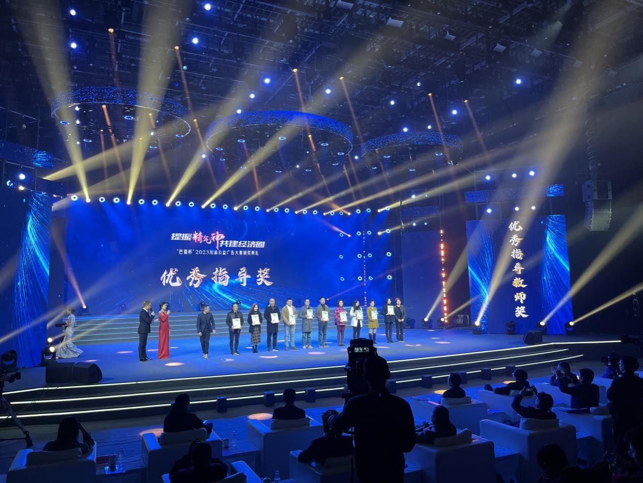 12月5日,“巴蜀杯”2023川渝公益广告大赛颁奖典礼在四川电视台演播大厅举行。新葡的京集团35222vip荣获组委会颁发的“优秀组织奖”,新葡的京集团35222vip广告系主任王凌峰荣获“优秀指导奖”,教师王世华、学生董未晞、蹇明洋、郑雪等主创的作品斩获银奖3项、优秀奖3项。
