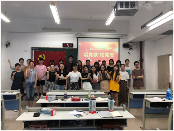 2018年5月21日15点30分,文新学院学生三支部在90302开展“唱党歌·铭党恩”主题活动。本次活动分为“唱党歌、爱国歌”接力比赛、学习优秀党员先进事迹、欢送毕业生党员三个环节,由杨雪主持。支部全体成员、部分入党积极分子,毕业生党员辅导员王涛老师,原支部书记胡天春老师、组织委员郭本玲老师,支部书记张静老师参加了此次活动。