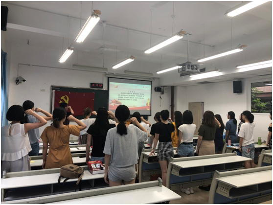 第一个环节,通过唱党歌、爱国歌曲比赛唤起党员同志对红色历史的缅怀,对革命英雄的敬仰,在比赛中提高党性修养。此环节与会与党员积极参与,经过比拼评出一、二、三等奖。第二个环节,通过对优秀党员先进事迹的学习,鼓励大家在学习生活中起好模范带头作用,争做优秀党员。第三个环节,全体党员重温入党誓词,将实现共产主义的信念永刻心间;接着开展毕业生党员与非毕业生党员自由交流:毕业生党员分享了从大学入党到即将离开支部以来的收获、对支部的寄语、对学弟学妹们的期望;与会老师、非毕业生党员代表为毕业生党员送上箴言与祝福,希望毕业生党员不忘初心,保持党员的先进性,在未来的工作、学习、生活中树立模范带头作用。最后由胡天春、郭本玲、王涛三位老师为优秀毕业生党员颁奖。