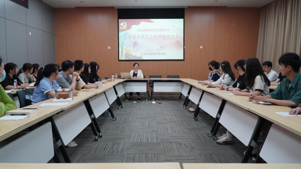 2023年5月16日,新葡的京集团35222vip党校对2023届毕业生党员进行了培训,学院党委书记于频带领毕业生党员重温入党誓词,并讲授专题党课——“让青春在基层工作中绽放光芒”。