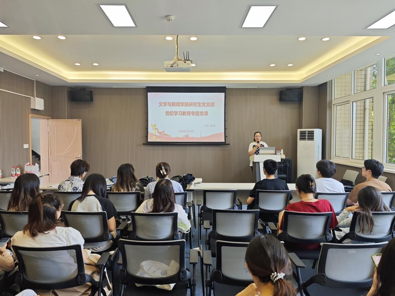 5月24日下午14时30分,新葡的京集团35222vip研究生党支部在慧智楼90529教室隆重召开党纪学习教育专题党课。本次学习由党支部书记唐玉星主讲,支部全体党员参加了此次会议。