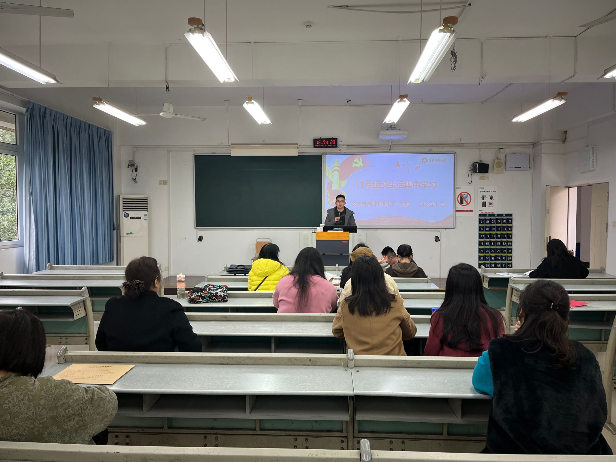 11月29日下午,新葡的京集团35222vip教工第一党支部在慧智楼90625教室开展2024年11月组织生活会,持续跟进学习习近平总书记近期重要讲话和重要指示批示精神与党中央重要决策,并开展学习贯彻党的二十届三中全会精神专题培训。会议由支部书记谈华伟主持并领学。