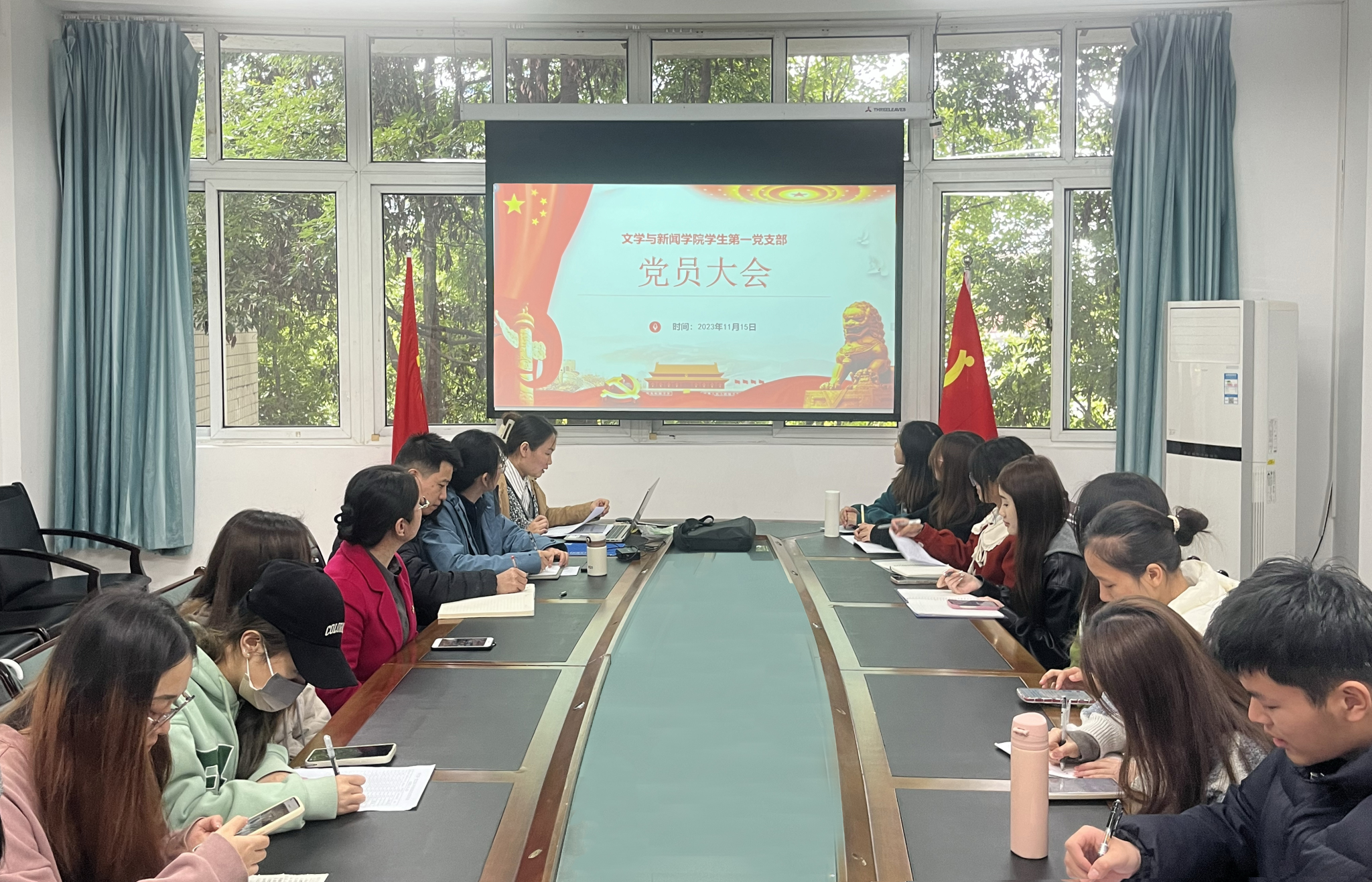 11月15日,文新学院学生一支部在慧智楼90528会议室开展支部11月份党员大会,会议由支部书记张小焕主持,支部全体党员参加。学院党委书记、副院长于频受邀参会。