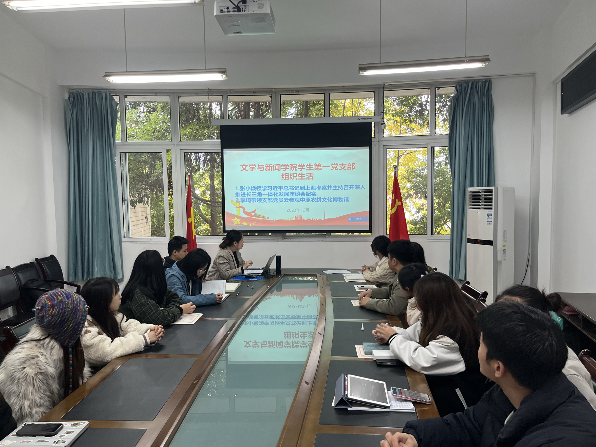 此次组织生活分为两项议程。首先是支部书记张小焕领学《习近平总书记到上海考察并主持召开深入推进长江三角一体化发展座谈会纪实》《习近平在上海、江苏盐城考察时的重要讲话精神》等内容。总书记上海考察期间,深入调研金融、科技和民生工作,此次上海之行深刻表明,从高质量发展到高品质生活,这是以中国式现代化全面推进强国建设、民族复兴伟业的题中应有之义。结合总书记在上海、江苏盐城考察时重要讲话精神,第二批主题教育临近收官,要坚持标准不降、劲头不松,把主题教育同各方面工作结合起来,做到两手抓、两不误、两促进。张老师鼓励支部党员要巩固主题教育成果,传承发扬不怕困难、不畏艰险、勇于斗争、敢于胜利的精神。