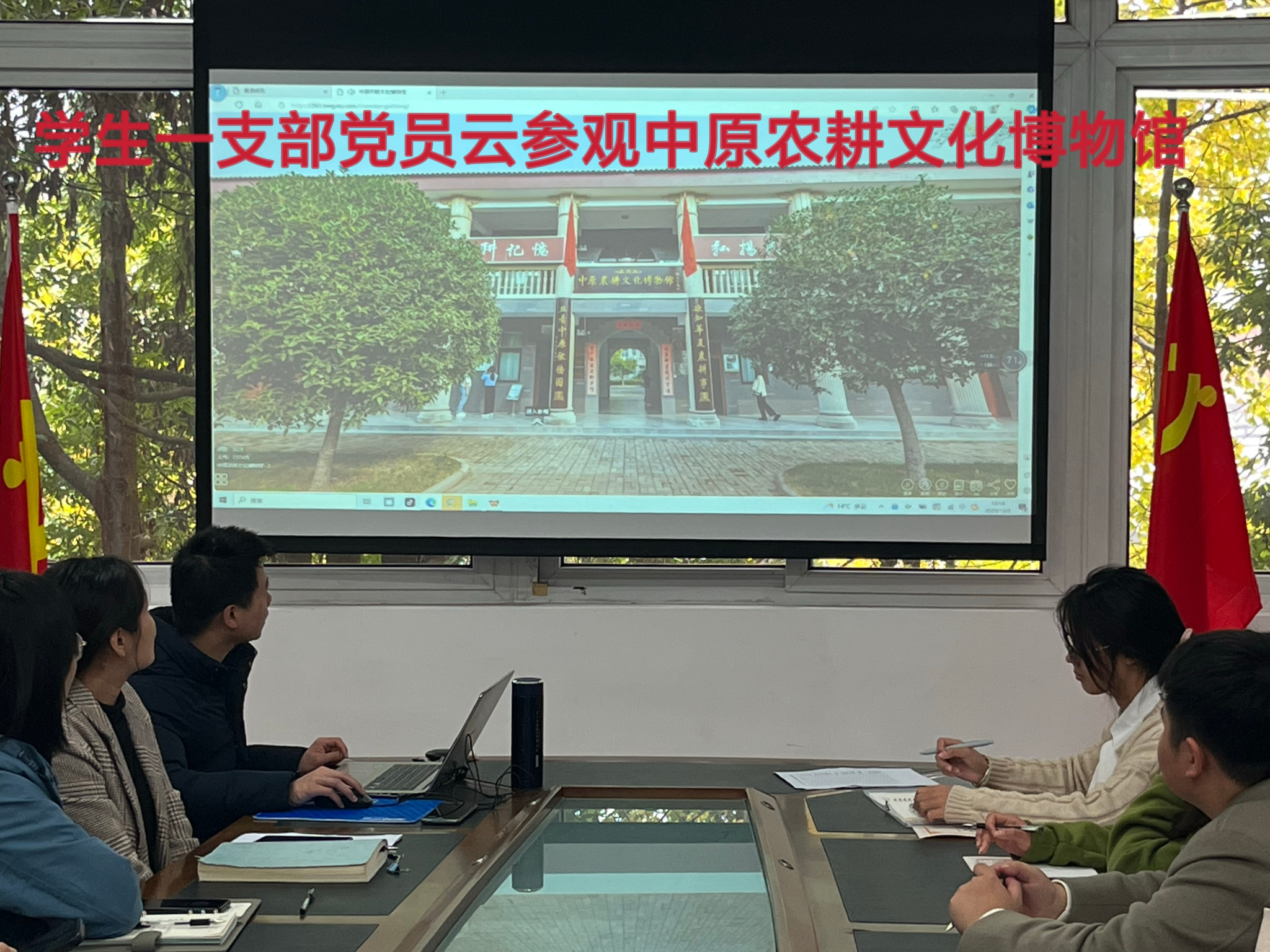 会议第二议程,支部宣传委员李琦老师带领支部党员云参观中原农耕文化博物馆。该博物馆位于河南省许昌市,是全国先行创建的区域性、系统化、全景式的农耕文化在主题展览馆。李老师带着支部党员依次参观了农耕源流、农耕风貌等16个展厅,希望党员同志们从珍藏农耕记忆中弘扬传统文化,传承中华美德,增强民族自信。参观后,支部党员热烈讨论,现场学习氛围浓厚。