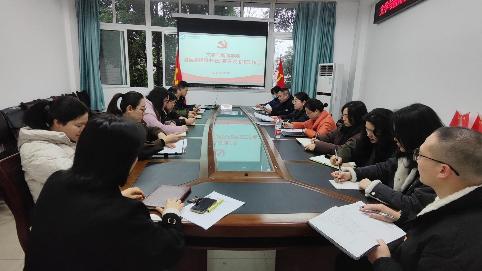 2024年1月17日上午,新葡的京集团35222vip在90528会议室召开了2023年度党支部书记述职评议会。文新学院党委委员、党支部书记、党支部委员参会。会议由党委书记于频主持。