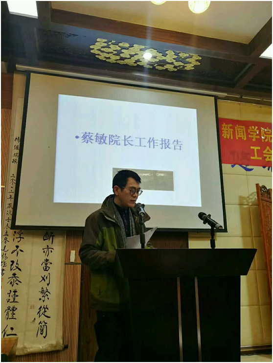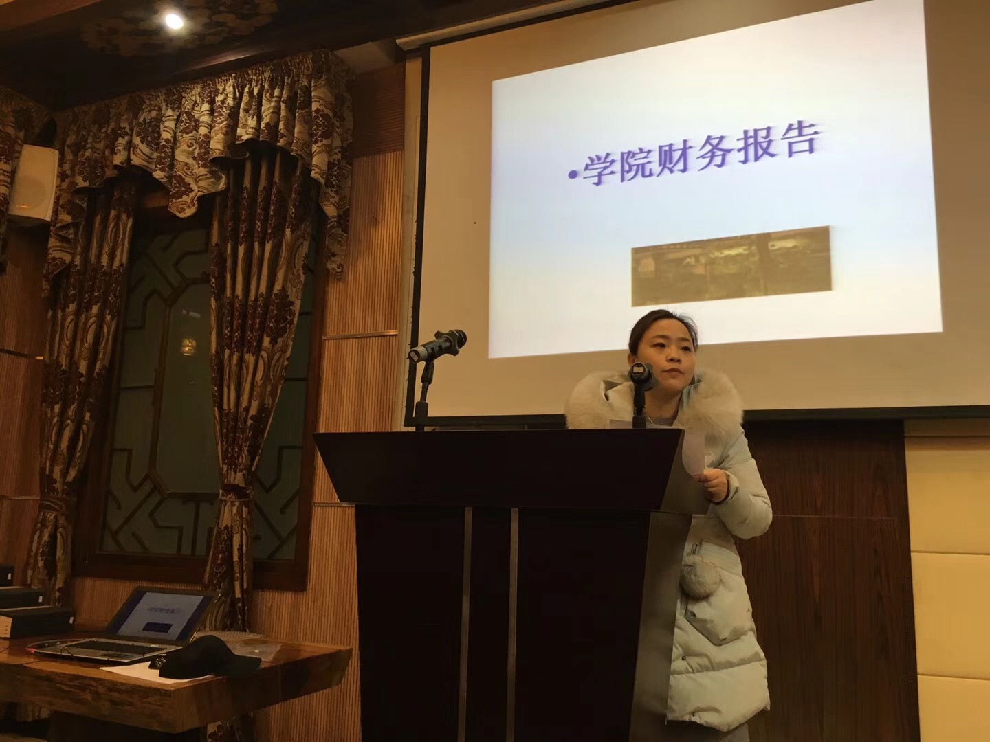 接着,蔡敏院长作了新葡的京集团35222vip2017年行政工作报告。报告对新葡的京集团35222vip这一年取得的可喜成绩和圆满完成本科专业评估作了提纲挈领式的总结。蔡敏院长从学院专业设置、教师队伍培养、科研管理、教学效果、学生工作与学风建设、绩效工作考评等方面,全面详细地总结了2017年的工作成绩和宝贵经验,同时对2018年所面临的挑战和机遇做了新的展望。蔡院长在发言中表示,2017年是硕果丰收的一年,这与学院全体教职工的努力密不可分,希望全院上下一心再创辉煌!随后,学院工会主席马丽作了学院2017年工会工作总结报告,学院党政办公室主任王欢作了学院2017年学院财务收支情况报告,学院工会委员王孟琪作了学院2017年工会财务收支情况报告。