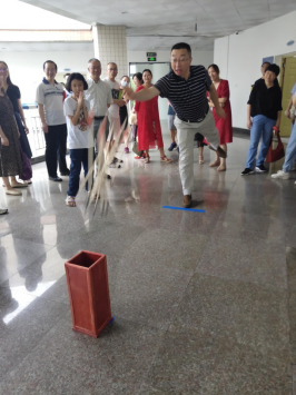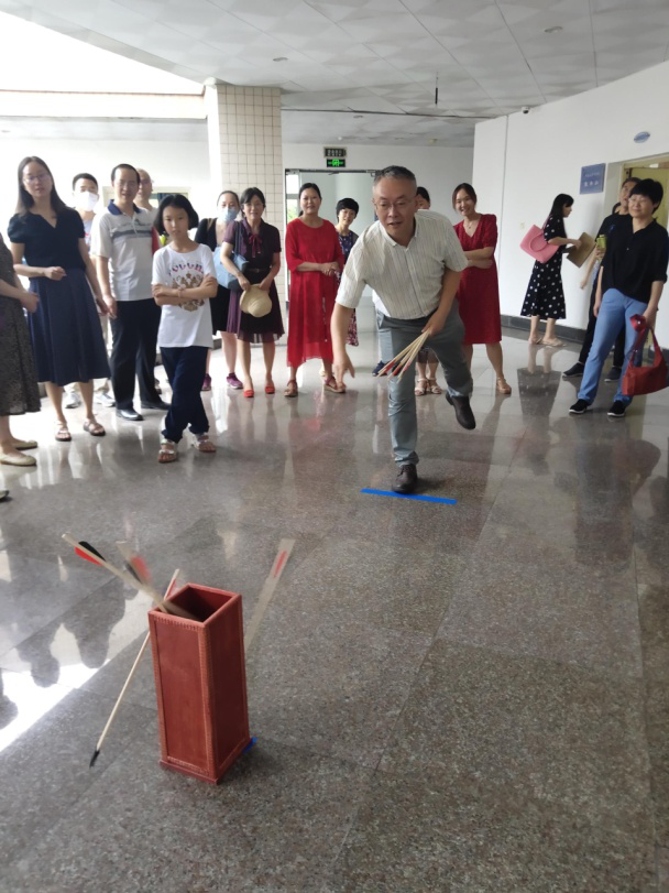 本次活动以传统文化体验投壶项目为主,全院教职工以系部、行政为单位,各教职工齐心合力,精准投掷,现场响起阵阵喝彩声,鼓掌声,鼓励声。最终网络与新媒体系、新闻学系获一等奖,行政队、汉文系获二等奖,广电西和广告系获三等奖。