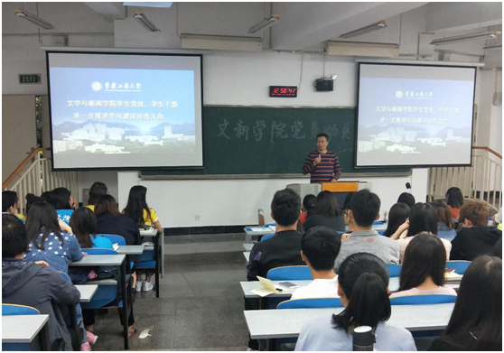 大会由学院分团委书记孔海啸老师主持,辅导员王涛老师向全体学生党员、学生干部解读了此次本科教学评估的内容、原则、目的及意义;学院分管学生工作的李华平副书记在会上做了动员讲话。李华平副书记详细分析了重庆工商大学目前面临的“双一流”建设、博士学位授权点和教育部对普通高等学校新一轮的定位分类三个发展形势,并结合 “学校十三五规划”和转型升位,强调了此次本科教学水平审核评估对新葡的京集团35222vip长远发展的重要意义。