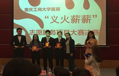 2016年4月20日下午6时,重庆工商大学首届“义火薪薪”志愿服务项目大赛决赛在7200报告厅拉开序幕。马克思主义学院党总支书记陈松、社会与公共管理学院副院长侯明喜、校团委副书记杨娟、重庆市志愿服务工作指导中心干部雷筱、经济学院分团委书记林新竹担任本次大赛的评委。