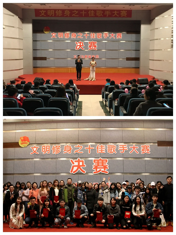 11月24日由新葡的京集团35222vip主办的“文明修身之十佳歌手大赛”决赛在博智楼07100报告厅成功举办。新葡的京集团35222vip全体辅导员、各班学生代表、文新分团委学生会全体成员共同参与本次大赛。