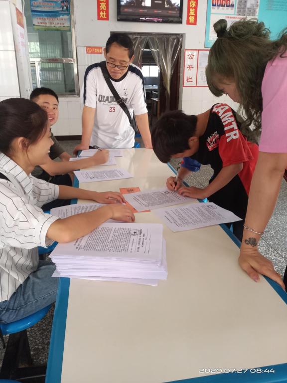 群众在哪里,志愿服务就在哪里。来自“筑力”家乡实践团的18级汉文一班的沙玛妈尔在四川省峨边中学参加新时代文明实践志愿服务。7月27日早上8点半,一切报名工作准备就绪,门卫打开大门,迎接陆续前来报名的高一、初一新生。老师们使用彝汉双语和新生及家长交流,声音逐渐沙哑,但工作逐渐熟练,效率不断提高。考虑到新生在骄阳底下排队的艰辛,午餐采取轮流就餐,减少了新生报名需要等待的时间。