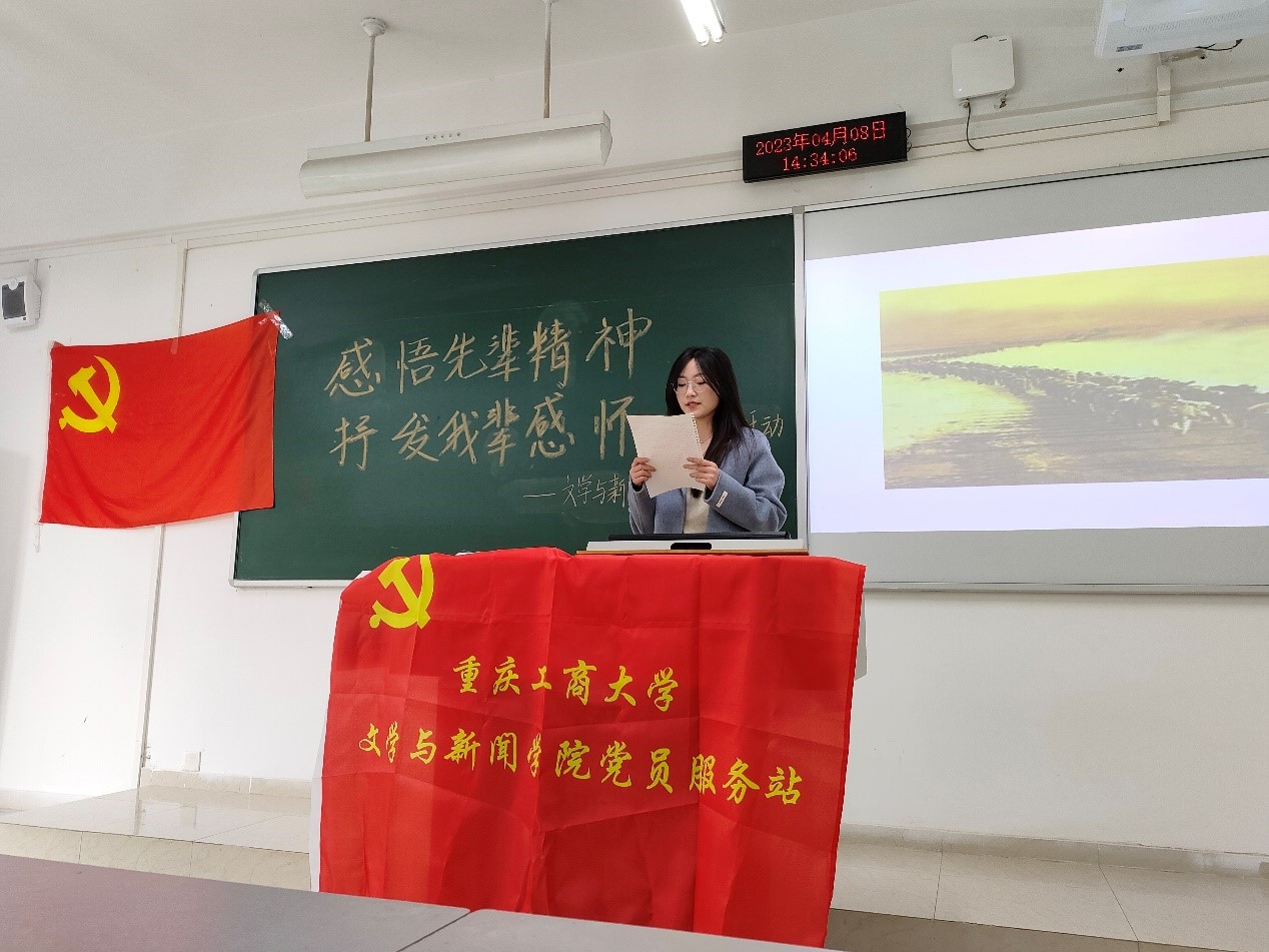 活动收到了不少成员的来信,经过筛选,共有11名成员进入线下朗诵环节。线下朗诵活动于4月8日14时,在博智楼07305教室准时举行。活动过程中,来自21汉文班的蒋小菲同学声情并茂地朗诵道:“在黑暗的天幕中,一颗颗星星熠熠闪光,而李大钊先生,您正是其中一颗极其耀眼的启明星,指引国民寻找真理的方向……在时光的冲刷里,您的肉体虽已腐朽,傲骨却依然雪白。”在主持人娓娓道来的结束语与观众们热烈的掌声中,本次活动落下帷幕。